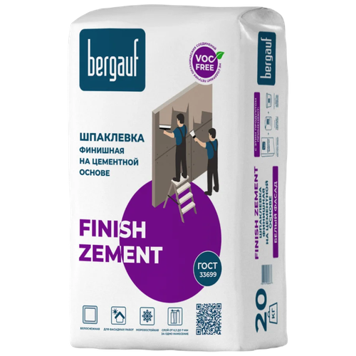 Описание шпаклевки Bergauf Finish Zement финишная белая 5 кгШпаклёвка на цементной основе образует ровный и тонкий светлый слой уже после одного нанесения. Белоснежный водостойкий состав скрывает неровности стен. Он легко наносится на бетон, штукатурку, гипсокартон и другие поверхности. В свою очередь, нанесённая на стену финишная шпаклёвка становится прекрасной основой для декоративной штукатурки, текстурных или тонких обоев, краски или керамической плитки. Шпаклёвке Bergauf не страшна влажность или излишняя сухость воздуха в помещении. Кроме этого, она может применяться с наружной части здания для нанесения на фасад или цоколь.