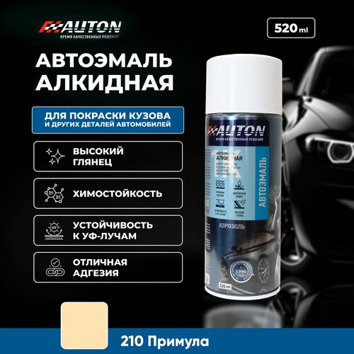 Краска для автомобиля / Автоэмаль алкидная AUTON, 210 Примула, баллон аэрозоль, 520 мл