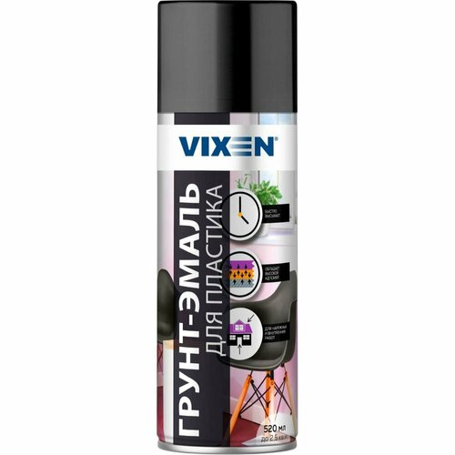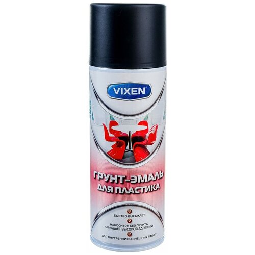 Грунт-эмаль Vixen для пластика, черный матовый RAL 9005, аэрозоль 520 мл VX-50100