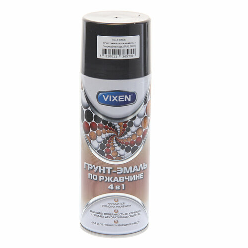 Грунт-эмаль по ржавчине 4 в 1 черный янтарь RAL 9005 аэрозоль 520мл VIXEN