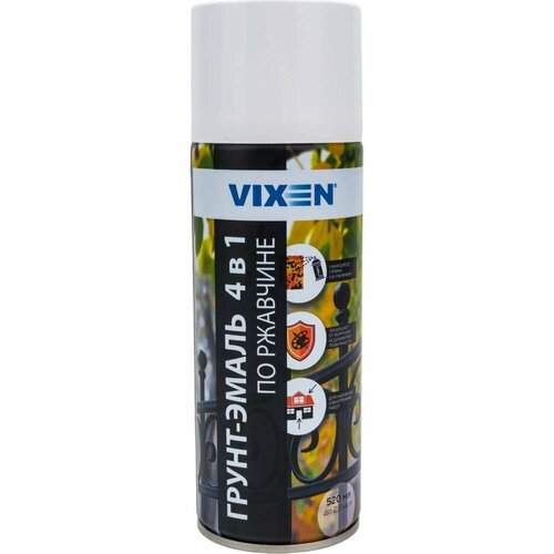 Грунт-эмаль Vixen VX-519003 по ржвчине сигнальный белый 4в1 (RAL 9003) 520 мл