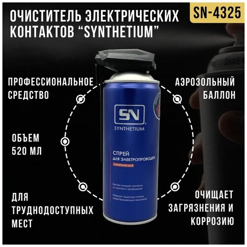 Очиститель электрических контактов, спрей для электропроводки Synthetium, сумным носиком, 520 мл, аэрозольный баллон, SN-4325