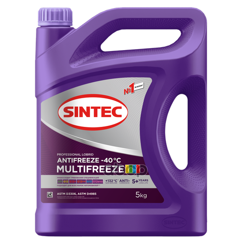 SINTEC MULTIFREEZE -40 универсальный лобридный антифриз 5кг для двигателя автомобиля, охлаждающая жидкость в авто, фиолетовый, готовый к применению