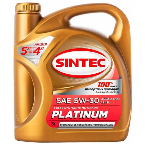 Моторное масло Sintec PLATINUM SAE 5W-30 API SL ACEA A3/B4 Акция 5л по цене 4л (801996)