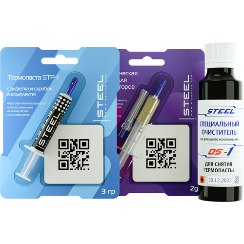 Комплект для обслуживания ! STEEL ПК №1 (Термопаста STP-1 3гр, Смазка для вентиляторов SPO-1 2мл, Очиститель для термопасты DS-1 50мл)