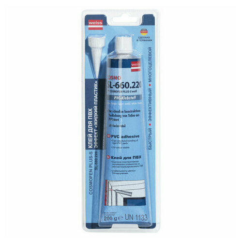 Клей диффузионный 200г COSMOFEN PLUS-S белый высокопрочный жидкий ПВХ, тюбик блистер, SL 660.220 BL