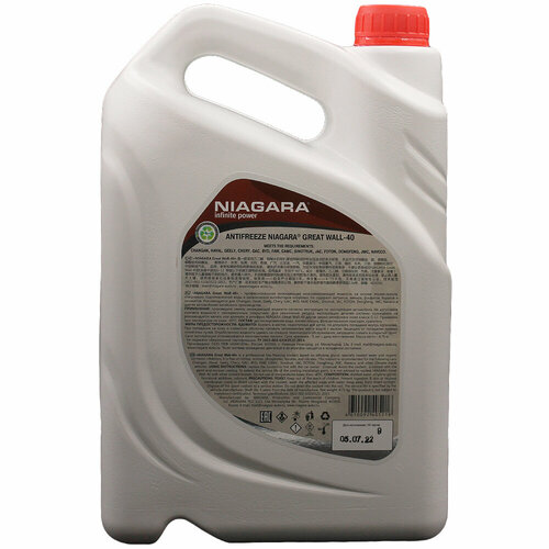 Антифриз «NIAGARA® GREAT WALL-40». Профессиональная охлаждающая низкозамерзающая жидкость на основе этиленгликоля, специально подготовленной воды и органических ингибиторов коррозии. Не содержит нитритов, аминов, фосфатов, боратов и силикатов. Разработана в строгом соответствии со стандартами КНР и требованиями китайских автопроизводителей. Рекомендован для эксплуатации в системах охлаждения ДВС автомобилей: Changan, Haval, Geely, Chery, GAC, BYD, FAW и других автомобилей китайского производства, которым рекомендовано использование охлаждающих жидкостей соответствующих требованиям стандартов: GB 29743-2013 (China), SH0521-1999 SH0521-1999 (SHACMAN), ASTM D 3306, ASTM D 4985. Преимущества: Длительный срок эксплуатации - до 250 000* км; Обеспечивает требуемый уровень теплоотдачи от ДВС; Подходит для использования в ДВС из алюминия и чугуна; Нейтральна к полимерам, резинам и эластомерам; Не образует накипи и отложений**; Обладает улучшенными свойствами теплопередачи; Эффективно защищает от коррозии алюминиевые, медные, латунные, стальные и чугунные элементы систем охлаждения. Нейтрален к припоям. Соответствует ASTM D2570; Обладает отличными моющими и нейтрализующими свойствами. *- при условии содержания системы охлаждения ДВС и ее агрегатов в исправном состоянии. **- при соблюдении требований по поддержанию уровня жидкости в системе, при соблюдении регламента замены жидкости и при содержании системы охлаждения ДВС и ее агрегатов в исправном состоянии. Внимание: Антифриз допускается эксплуатировать в ДВС легковой, легкой коммерческой и коммерческой автомобильной технике, других производителей, предписывающих использование охлаждающих жидкостей, соответствующих требованиям: GB 29743-2013 (China), SH0521-1999 (SHACMAN), ASTM D 3306, ASTM D 4985. Рекомендуется, в качестве охлаждающей жидкости для коммерческой техники GAC, CAMC, Sinotruk, JAC, FAW, FOTON, DongFeng, JMC, Naveco. Смешиваемость. Лучшие результаты работы Антифриза «NIAGARA GREAT WALL-40» достигаются при полной замене антифриза. Допускается смешивание «NIAGARA GREAT WALL-40» с другими органическими антифризами, соответствующими требованиям стандартов GB 29743-2013 (China), SH0521-1999 (SHACMAN), ASTM D 3306, ASTM D 4985, ASTM D2570, в такой пропорции, чтобы содержание антифриза «NIAGARA GREAT WALL-40» было не менее 60%.