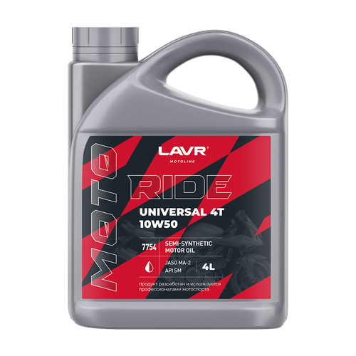 Моторное масло RIDE UNIVERSAL 4T 10W50 SM LAVR MOTO, 4 л / Ln7754