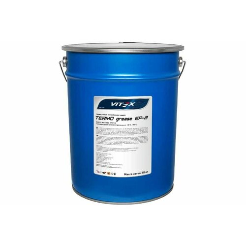 VITEX Termo Grease высокотемпературная (синяя) v904519. Min рабочая температура: -30°С. Объем (вес): более 1000 мл (г). Основа: литиевая. Класс вязкости по NLGI: NLGI2. Тип упаковки: ведро. Состав: мультикомплексный литиевый загуститель, пакет EP-присадок.