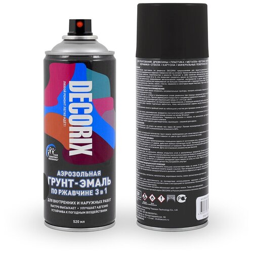 Высококачественная грунт-эмаль по ржавчине DECORIX предназначена для защитно-декоративного окрашивания заржавевших или подверженных коррозии поверхностей из сплавов чёрных металлов при бытовом применении, декоративно-оформительских работах, строительстве и ремонте
