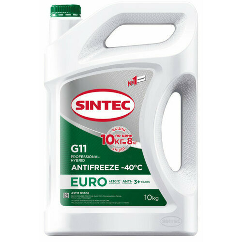 Антифриз Sintec Euro зеленый G11 (-40) 10 кг по цене 8 кг SINTEC 990582 | цена за 1 шт