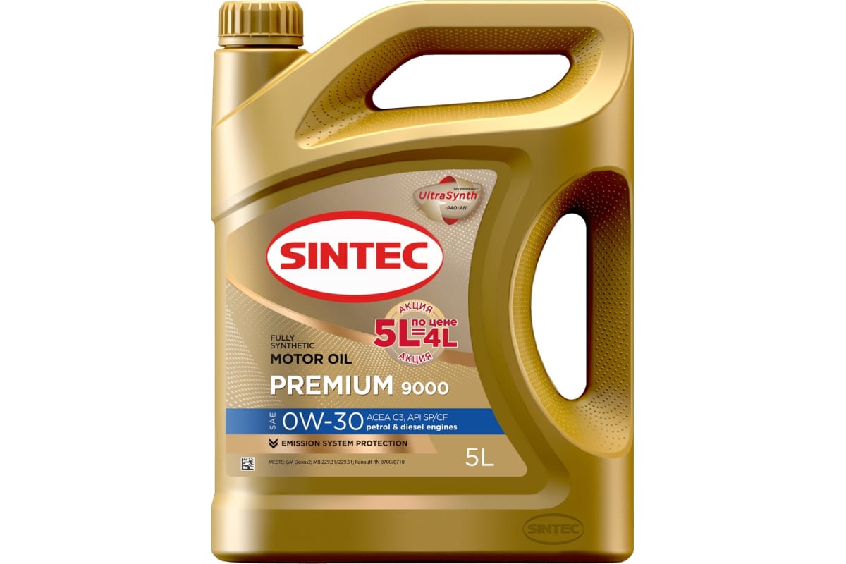 Моторное масло SINTEC синтетическое Premium 9000 0w30 C3 SP/CF 5л