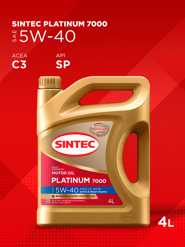 Масло моторное синтетическое Sintec Platinum 7000 5W-40 C3 SP производится из высококачественных синтетических базовых масел и современного пакета присадок, что позволяет обеспечить превосходную защиту от износа, особенно в термонагруженных зонах, улучшенную термоокислительную стабильность для предотвращения накопления отложений на деталях двигателя. Обеспечивает легкий пуск двигателя при отрицательных температурах и низкий расход масла на угар. Низкий уровень зольности продлевает срок службы сажевых фильтров и катализаторов.Ключевые особенности:-Предотвращает преждевременное воспламенение топливной смеси в цилиндре (LSPI)-Обеспечивает надежную защиту двигателя от перегрузок и перегрева в экстремальных режимах эксплуатации-Соответствует современному стандарту ACEA C3 и превосходит требования к моторным маслам многих мировых автопроизводителей-Совместимо с системами доочистки выхлопных газов, чувствительных к уровню сульфатной зольности маселПрименение:Специально разработано для применения в бензиновых и дизельных двигателях легкового и коммерческого транспорта, в том числе с турбонаддувом и системами доочистки выхлопных газов.Предназначено для двигателей, отвечающих требованиям норм Euro 4, Euro 5 или Euro 6, и требующих использования в них масла стандарта ACEA C3 с высокой вязкостью HTHS, сниженной сульфатной зольностью.