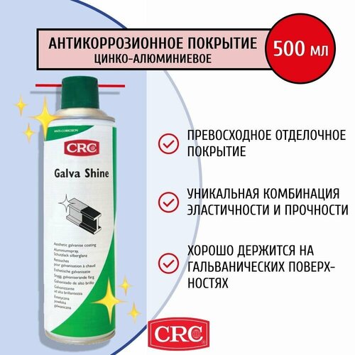 Антикоррозионное покрытие цинко-алюминиевое глянцевое для труб, деталей и металлоконструкций Galva Shine 500 мл 32319 CRC (Бельгия)