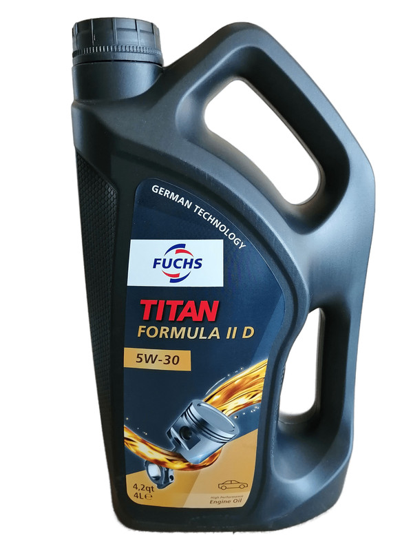 TITAN FORMULA II D 5W-30 - это моторное масло премиум-класса, которое обеспечивает высокуюпроизводительность в любых условиях окружающей среды. Продукт производится с использова-нием высокоиндексного базового масла и функционального пакета присадок.TITAN FORMULA II D 5W-30 специально разработано для автомобилей, оснащенных системами очистки выхлопных газов (например, каталитической системой фильтрации, сажевымифильтрами).Спецификации API SN ACEA C2/C3Рекомендации FUCHS BMW LONGLIFE-04 MB 229.31/229.51/229.52 VW 502 00 / 505 01