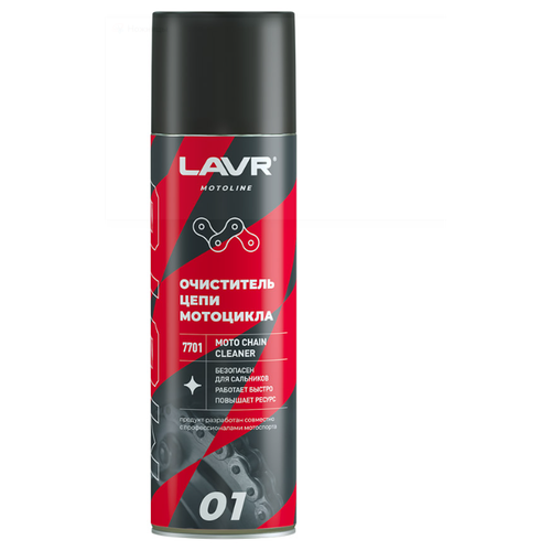 LAVR LN7701 Очиститель цепей 650мл - очиститель цепи мотоцикла, подходит для всех типов приводных цепей мото- и велотехники, безопасен для O, X и Y сальников, аэрозоль