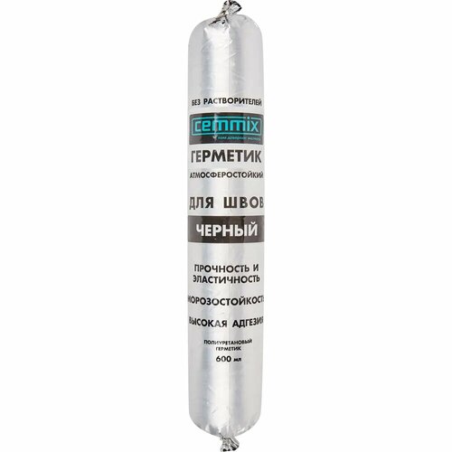 Клей-герметик Cemmix предназначен для заполнения швов, примыканий, мест ввода труб, а также для склеивания различных изделий из дерева и металла. Может использоваться для внутренних и наружных работ разного назначения — от гидроизоляции до укладки керамической черепицы. Подходит для работы с деревом и металлом.Герметик имеет черный цвет. Благодаря полиуретановой основе он:эластичен, поэтому слой клея не разрушается из-за теплового расширения материалов или вибрации;морозостоек и термостоек;не боится влаги;имеет высокую адгезию.Состав продается в мягкой упаковке-тубе объемом 600 мл. Не требует соблюдения специфических правил техники безопасности. Произведен в России.ПрименениеПоверхности предварительно зачищаются и высушиваются, затем герметик равномерно наносится на шов с помощью ручного или пневматического строительного пистолета. В течение 15 минут состав остается эластичным — его можно разгладить шпателем, смоченным в мыльной воде, и удалить излишки сухой ветошью. Материал полностью высыхает в течение 24 часов.Тип продукта (локальный): ГерметикНазначение: УниверсальныйСостав: ПолиуретанОбъем (л): 0.6Место использования: Внутренний / наружныйМарка: CEMMIXСтрана производства: РоссияТип упаковки: ТубаМатериал поверхности применения: Дерево, Металл, СтальВодостойкий: ДаМорозостойкость: ДаТермостойкость: ДаАнти-плесень: НетНеобходим пистолет: ДаПод покраску: ДаЦвет: ЧерныйСпособ очистки: Сухая ветошь