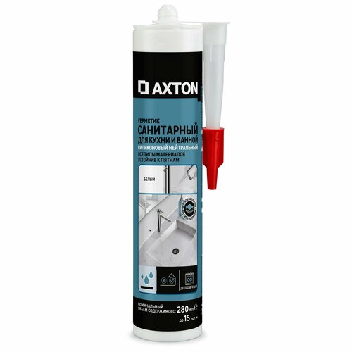 | Герметик санитарный силиконовый AXTON 280 мл белый нейтральный | ||||