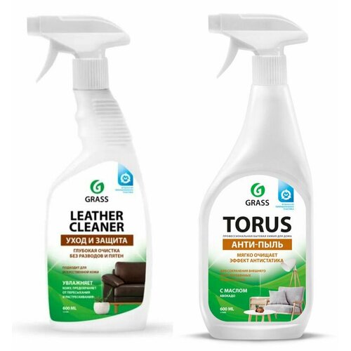Grass Средство для очистки изделий из кожи Leather Cleaner, 600 мл - Средство для очистки изделий из натуральной и искусственной кожи любых оттенков. Глубоко проникает в поры, хорошо очищая поверхность. Придает блеск, восстанавливает структуру. Насыщен глицерином, увлажняет кожу, предохраняя от пересыхания и растрескивания. Защищает от УФ и преждевременного старения. Быстро впитывается, не оставляя пятен. Имеет приятный аромат.Grass Очиститель-полироль для мебели Torus Анти-пыль, 600 мл - Специальное средство Torus предназначено для восстановления и сохранения естественного вида деревянных поверхностей. Очищает от пыли, разводов, пятен, обладает антистатическим эффектом. Благодаря маслу авокадо защищает мебель и придает блеск. Позволяет улучшить внешний вид, скрывает легкие повреждения.