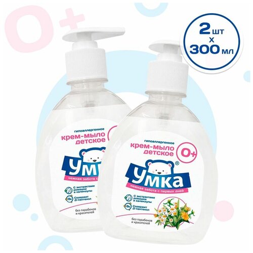 Жидкое детское крем-мыло Умка для новорожденных, с дозатором, гипоаллергенное, с экстрактом календулы и ромашки 2 шт по 300мл.