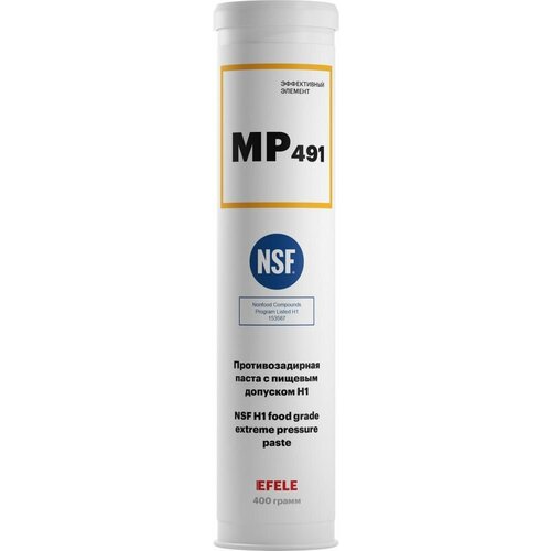 Противозадирная смазка с пищевым допуском EFELE MP-491 изготовлена на основе минерального масла и композиции светлых твердых смазочных материалов. Обладает исключительной термостойкостью, высокой несущей способностью и противозадирными свойствами. Применяется в узлах трения: направляющие скольжения, резьбовые соединения, шлицевые и шпоночные соединения, сопряжения с посадками с натягом.