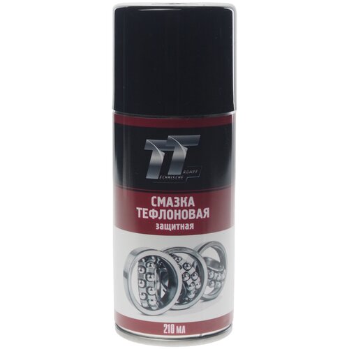 Тефлоновая защитная смазка TT 210 мл, аэрозоль WT02/59 предназначена для работы в узлах трения, испытывающих повышенные нагрузки, в том числе температурные. Также предназначена для смазывания цепей, шарниров, втулок, подшипников, зубчатых и червячных передачах, резьбовых соединениях. Защищает от пыли и грязи, создаёт антифрикционную плёнку. Предохраняет от примерзания и пригорания Образует долговременный смазывающий слой на поверхности. Не содержащее жиров смазочное и разделительное средство на основе PTFE (тефлона) не притягивает пыль и грязь. Устраняет затрудненный ход деталей, скрипы и рывки в движении, обеспечивает длительную защиту от износа. Применяется как универсальная смазка в случаях, когда использование масел или силиконов нежелательно, например, на лакированных поверхностях. Использование тефлоновой смазки ТТ позволяет обеспечить смазывание даже чувствительных к смазкам пластиков и резины и обеспечить надежное функционирование соответствующего узла. Выдерживает высокие температуры, может использоваться как антипригарное покрытие. Используется для обработки металла, пластика, резины, дерева, кожи. При температурах от -15°С до +150°С сохраняет все свои эксплуатационные свойства. Обеспечивает значительную экономию расходов при эксплуатации промышленного оборудования.