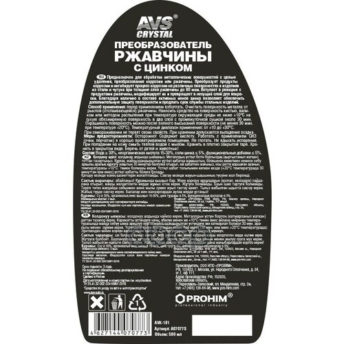| Преобразователь ржавчины с цинком (триггер) 500 мл AVS AVK-181 / a07077s | ||||