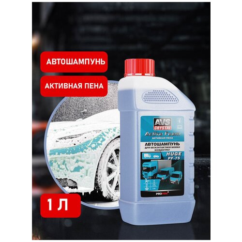 Автошампунь для бесконтактной мойки AVS Active Foam PF-75 HUGE 1 л - концентрат 1:5-9, быстро и эффективно удаляет сложные загрязнения: солевые, органические, неорганические отложения, маслянистые подтеки