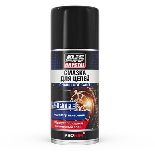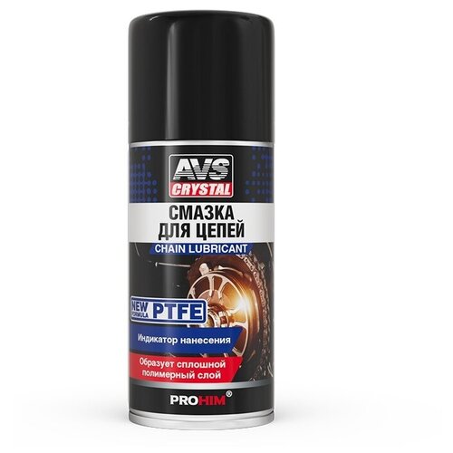 PTFE в составе обеспечивает максимальную защиту от износа, продлевает срок службы цепей. Вытесняет влагу, отталкивает воду и грязь, предотвращает коррозию. При нанесении легко проникает под ролики цепи к местам смазывания. После нанесения смазка образует прочную пленку, обладающую необходимой консистенцией и высокой адгезией. Не вытекает и не вымывается водой. Остается в зоне трения, не попадая на поверхность цепи, что препятствует налипанию абразивных частиц. Цвет смазки и распылительная головка с носиком позволяют точно дозировать и наносить смазку только в необходимые места.Способ применения: Очистить цепь с помощью «Очиститель цепей AVS Crystal» и высушить. Хорошо встряхнуть аэрозоль и, прокручивая привод, нанести смазку тонким слоем сверху на нижнюю ветвь цепи по всей её длине. Удалить излишки смазки безворсовой салфеткой.Внимание: избегать попадания на тормозные механизмы!Меры предосторожности: Опасно! Чрезвычайно легковоспламеняющийся аэрозоль! Баллон под давлением! При нагревании возможен взрыв! Беречь от источников воспламенения, нагревания, искрящегося и открытого огня! Предохранять от воздействия прямых солнечных лучей и нагревания выше 50°С. Не курить! Не распылять вблизи открытого огня или других источников воспламенения! Не разбирать и не давать детям! Не вдыхать испарения и брызги! Избегать попадания внутрь, на открытую кожу и в глаза! При попадании на кожу немедленно смыть большим количеством воды с мылом. При попадании в глаза немедленно промыть их водой и обратиться к врачу, показав эту этикетку. Применять средства защиты кожи, глаз и органов дыхания. Избегать воздействия статического электричества.Условия транспортировки и хранения: Рекомендуется хранить в хорошо проветриваемом сухом помещении на расстоянии не менее 1 м от нагревательных приборов, при температуре от +5 до +25°С. Не допускать сдавливания баллона, следить за сохранением целостности упаковки. Беречь от воздействия солнечных лучей и атмосферных осадков.Объем: 210 млСостав: Смесь алифатических и ароматических углеводородов >30%, нефтяное масло >30%, нафтеновые углеводороды >15%, ультрадисперсный порошок политетрафторэтилена ≥5%.