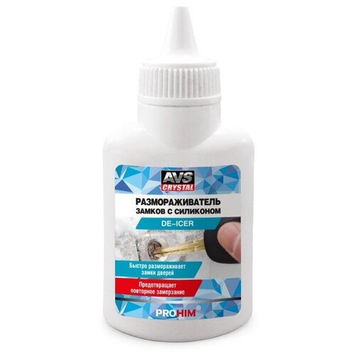 Размораживатель замков AVS AVK-756 с силиконом, 40 мл. Эффективное средство для размораживания замков всех систем: автомобильных (дверей, багажника), висячих, врезных и пр. Вытесняет влагу, предотвращая повторное примерзание. Входящий в состав силикон смазывает личинку замка, защищает от коррозии.