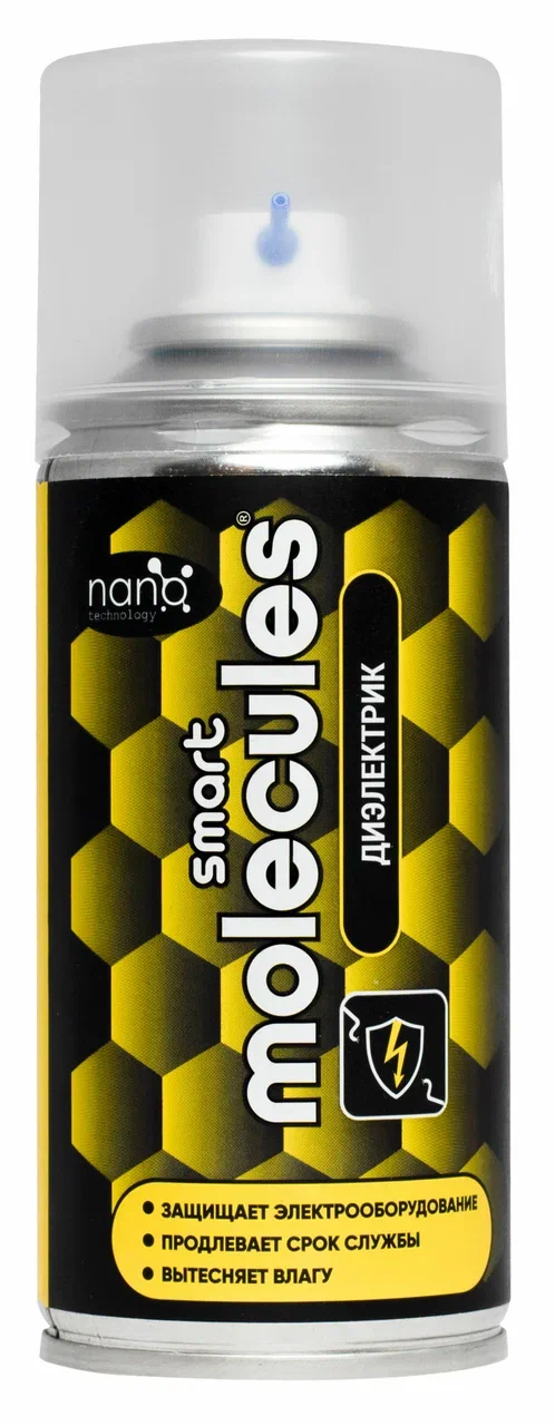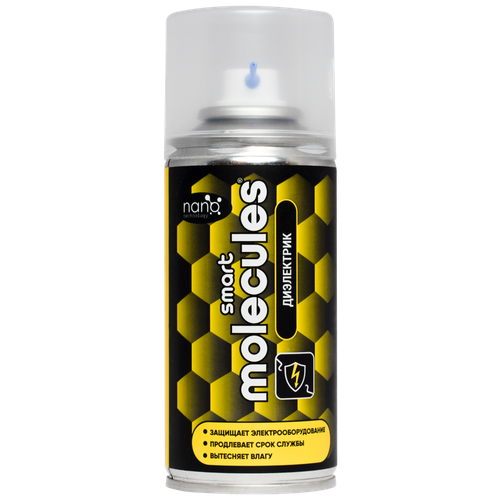 Диэлектрик Molecules на 210 мл – аэрозоль, защищающий автомобильное электрическое оборудование (подогрев сиденья, систему вентиляции) от негативного воздействия окружающей среды.Защита и эффективная очисткаЖидкость не только вытесняет воду, также защищает электронные системы от попадания внутрь агрессивных веществ, негативного влияния окружающей среды. Она улучшает токопроводимость, повышает сопротивление изоляции, тем самым уменьшая риск короткого замыкания.За счет минерального масла жидкость устойчива к перепадам температур – она не замерзает на морозе, не нагревается, когда на улице жара. В составе также есть компонент, который предотвращает окисление электроузлов. Диэлектрик подходит для любых материалов, выводит влагу и очищает от окиси даже в самых труднодоступных местах. Перед нанесением аэрозоля поверхность не нужно обрабатывать специальными средствами.