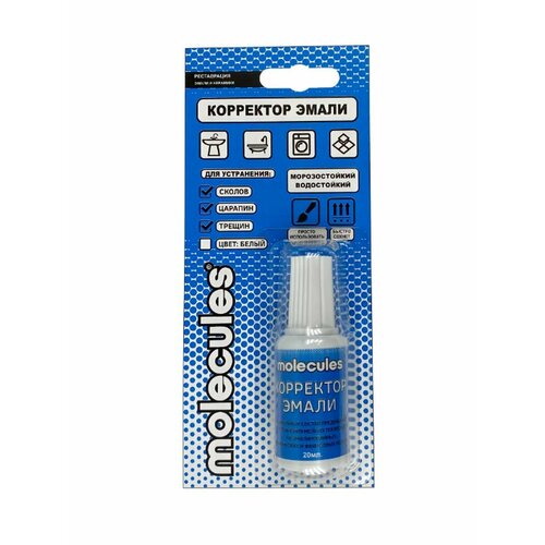Корректор эмали Molecules (белый; 20 мл) KMLS750 предназначен для устранения мелких повреждений на эмалированных, керамических и фаянсовых изделиях. Морозостойкий и водостойкий. Прост в использовании, быстросохнущий.