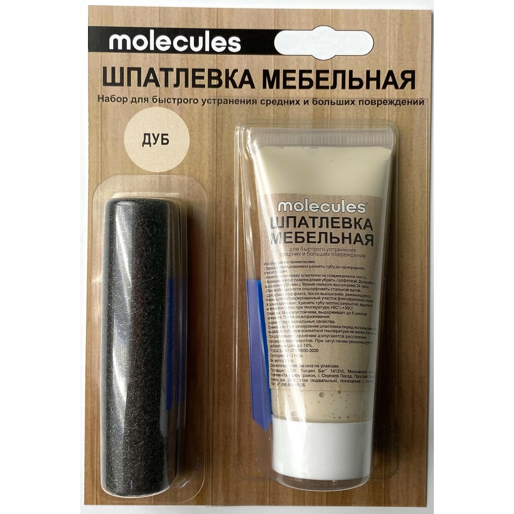 Мебельная шпатлевка Molecules дуб KMLS753 предназначена для заполнения и выравнивания средних и больших сколов, отверстий, вмятин, в том числе восстановление углов и ребер на ламинате, паркете и различных поверхностях из ЛДСП и массива дерева, подверженных интенсивной эксплуатации. Образует прочное покрытие.