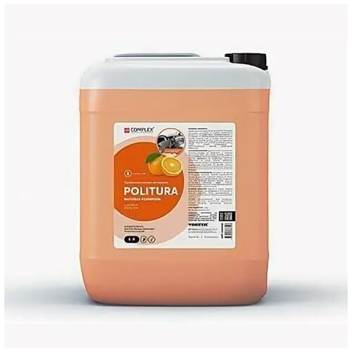 COMPLEX POLITURA - матовый полироль для пластиковых, виниловых и кожаных изделий с ароматом апельсина.Применяется для очистки и полировки внутренних поверхностей автомобиляПозволяет добиться глубокого матового эффектаОбразует на поверхности защитный слой, который не оставляет жирных следовОбладает антистатическим и водоотталкивающим действиемОставляет приятный ароматСоставДеионизированная вода (более 30 %), полифункциональные силиконы (более 5 %, но менее 15 %), неионогенные поверхностно-активные вещества (менее 5 %), ароматизатор (менее 5 %), краситель (менее 5 %), консервант (менее 5 %). ПрименениеСредство готово к применению и не требует разбавления водой. Нанести небольшое количество полироли на микрофибровую салфетку или мягкую губку и располировать обрабатываемую поверхность.ХранениеХранить в плотно закрытой оригинальной таре при температуре от +5˚С до +35˚С. Допускает заморозку при транспортировке. В случае замораживания перед применением продукт следует полностью разморозить при комнатной температуре и тщательного перемешать. Срок годности: 2 года с даты изготовления