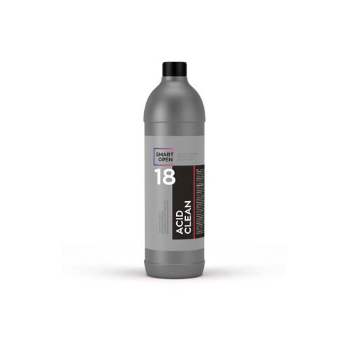 SMART OPEN SMART ACID CLEAN 18 - сильнокислотный (ph=0.5) очиститель легкосплавных, в том числе лакированных, колесных дисков (неокрашенных и не имеющих специальных покрытий) на основе соляной и фосфорной кислоты. Позволяет крайне быстро очистить такие колесные диски, а также элементы подвески, днище автомобиля и получить блестящую поверхность. Заметно увеличивает скорость обработки. Эффективно очищает поверхности от окислов, налета тормозных колодок, других неорганических загрязнений (цемент, побелка, известь). Преимущества: Состав способен крайне быстро очистить поверхность лакированных колесных дисков, элементов подвески, днища автомобиля. Состав способен крайне быстро очистить поверхность лакированных колесных дисков, элементов подвески, днища автомобиля. Повышает уровень блеска очищенной поверхности. Эффективно очищает поверхности от окислов, налета тормозных колонок, других неорганических загрязнений (цемент, побелка, известь).