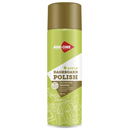 Dashboard polish Apple — качественная полироль для панели приборов, пластиковых и виниловых деталей салона. Средство имеет аромат яблока, отлично полирует поверхности и придает им блеск, защищает от солнца, воды, устраняет электризацию. Препарат реализуется в компактном баллоне емкостью 220 мл. Преимущества полироли AIM-ONE DASHBOARD POLISH:· отлично полирует, придает блеск;· защищает материалы от солнца;· отталкивает воду, нейтрализует статический заряд;· компактный баллон удобен в хранении. Подходит для машины И дома Dashboard polish может использоваться в салоне автомобиля или в быту, он подходит для полировки пластмассовых и других искусственных материалов. Использовать средство очень просто: достаточно распылить аэрозоль по поверхности и через минуту протереть тряпкой. На пластике образуется гладкий блестящий слой, придающий материалу привлекательный вид. Продукт эффективно противостоит вредному воздействию солнечных лучей: пленка не пропускает ультрафиолет, защищает поверхность от растрескивания и преждевременного старения. Кроме того, полироль отталкивает влагу и устраняет электризацию. Способ ПРИМЕНЕНИЯ1. Удалить пыль с поверхности;2. Встряхнуть баллон перед использованием;3. Нанести на расстоянии 15-20 см;4. Подождать одну минуту, дав составу впитаться;5. Отполировать поверхность до появления блеска чистой, мягкой и сухой тканью.