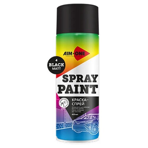 Краска-спрей черная матовая (аэрозоль) 450мл AIM-ONE