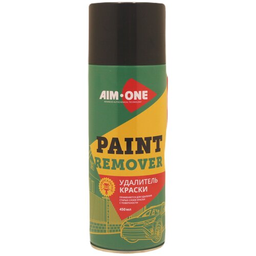 Paint Remover — смывка краски, предназначена для удаления старых слоёв краски с любых металлических поверхностей. Продукт широко применяется в обработке поверхностей автомобилей, мотоциклов, инструментов и механизмов, запчастей. Используется в авто, бытовой и промышленных сферах. Удалитель краски предлагается в удобном баллоне объемом 450 мл с качественным распылителем.преимущества удалителя краски AIM-ONE:эффективно растворяет старую краску, лаки и эмали;удаляет даже несколько слоёв;универсален — для машины и дома.Удалитель просто наносится — распылением в области загрязнения. Действует эффективно – старая краска отделяется от металлической поверхности. Для растворения лакокрасочного покрытия требуется 15 минут, после чего его остатки нужно смыть водой.Смывка в аэрозольном баллоне - удобна в использовании: баллон хорошо заправлен и снабжен качественным распылителем. Некоторые виды материалов непригодны для обработки – опробуйте действие средства на небольшом малозаметном участке. Не допускать попадания средства на пластмассовые и резиновые детали, это может вызвать изменение их свойств.