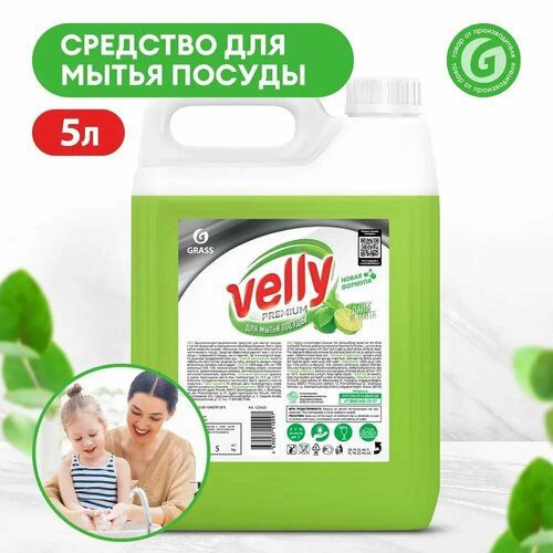 Grass Средство для мытья посуды Velly Premium лайм и мята канистра 5 кг 125425