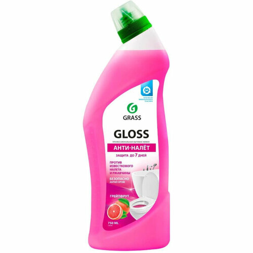 GRASS Чистящее средство Grass Gloss Pink,"Анти-налет", гель, для ванной комнаты, туалета, 750 мл