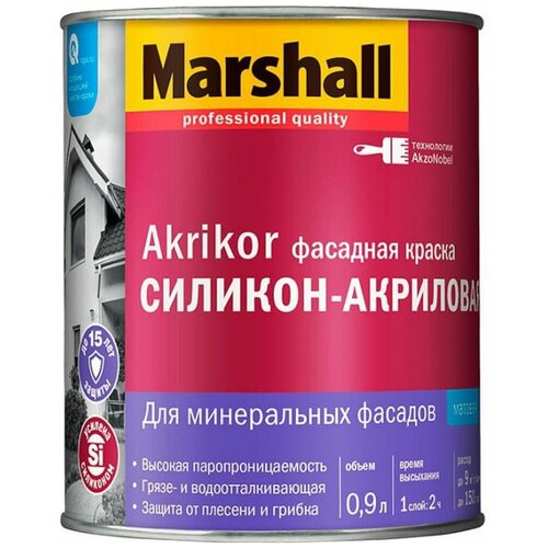 Краска Marshall Akrikor Фасадная Силикон-акриловая матовая BW 0.9л