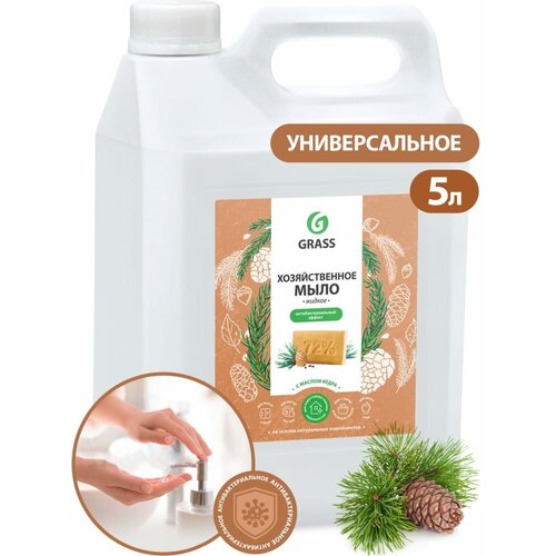 Мыло жидкое Grass Milana "Хозяйственное с маслом кедра", 5000мл, канистра, 1шт.