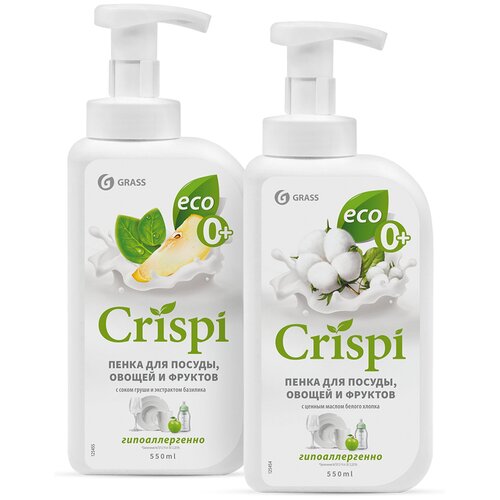 Средство для мытья посуды фруктов и овощей Grass CRISPI пенка 550 мл набор (2шт)