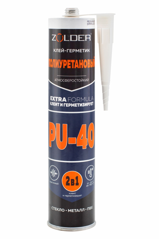 Клей-герметик полиуретановый ZOLDER PU-40 быстросохнущий, атмосферостойкий, белый, 280мл