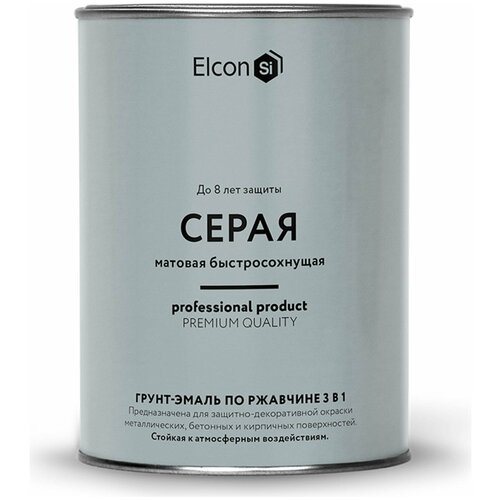 Грунт - эмаль по ржавчине Elcon 3 в 1 матовая, серая, 0.8 кг 00-00462297