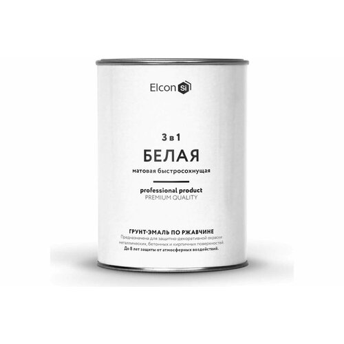 Быстросохнущая грунт-эмаль по металлу Elcon 3 в 1 по ржавчине, матовая, белая, 0.8 кг 00-00462295