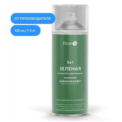 Грунт-эмаль по ржавчине 3 в 1 Elcon зеленая, аэрозоль 520 мл