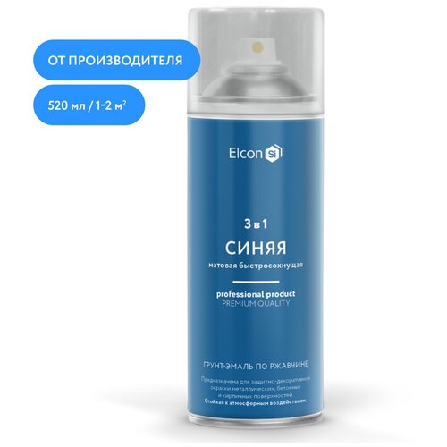 Грунт-эмаль по ржавчине 3 в 1 Elcon матовая, синяя, 520 мл, аэрозоль 00-00462569 .