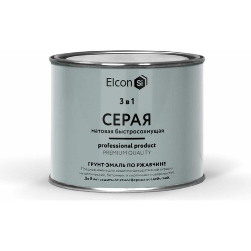 Грунт-эмаль по ржавчине 3в1 "Elcon" серая матовая 0,4кг