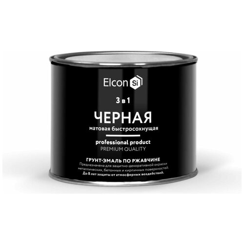 Грунт-эмаль по ржавчине 3 в 1 Elcon черная, 0,4 кг